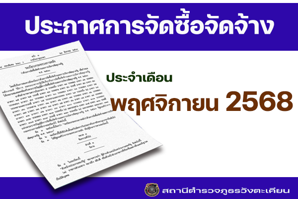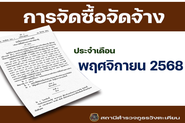 ประจำเดือน พฤศจิกายน 2568 สภ.วังตะเคียน ประกาศผู้ชนะการเสนอราคาจัดซื้อน้ำมันเชื้อเพลิง เพื่อใช้ในภาร…