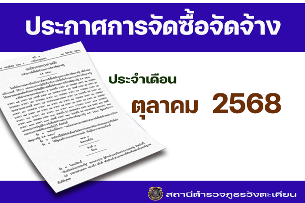 ประจำเดือน ตุลาคม 2568 สภ.วังตะเคียน ประกาศผู้ชนะการเสนอราคาจัดซื้อน้ำมันเชื้อเพลิง เพื่อใช้ในภารกิจ…