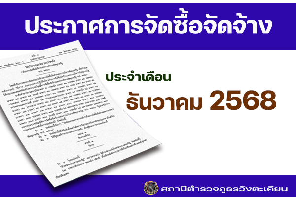 ประจำเดือน ธันวาคม 2568 สภ.วังตะเคียน ประกาศผู้ชนะการเสนอราคาจัดซื้อน้ำมันเชื้อเพลิง เพื่อใช้ในภารกิ…