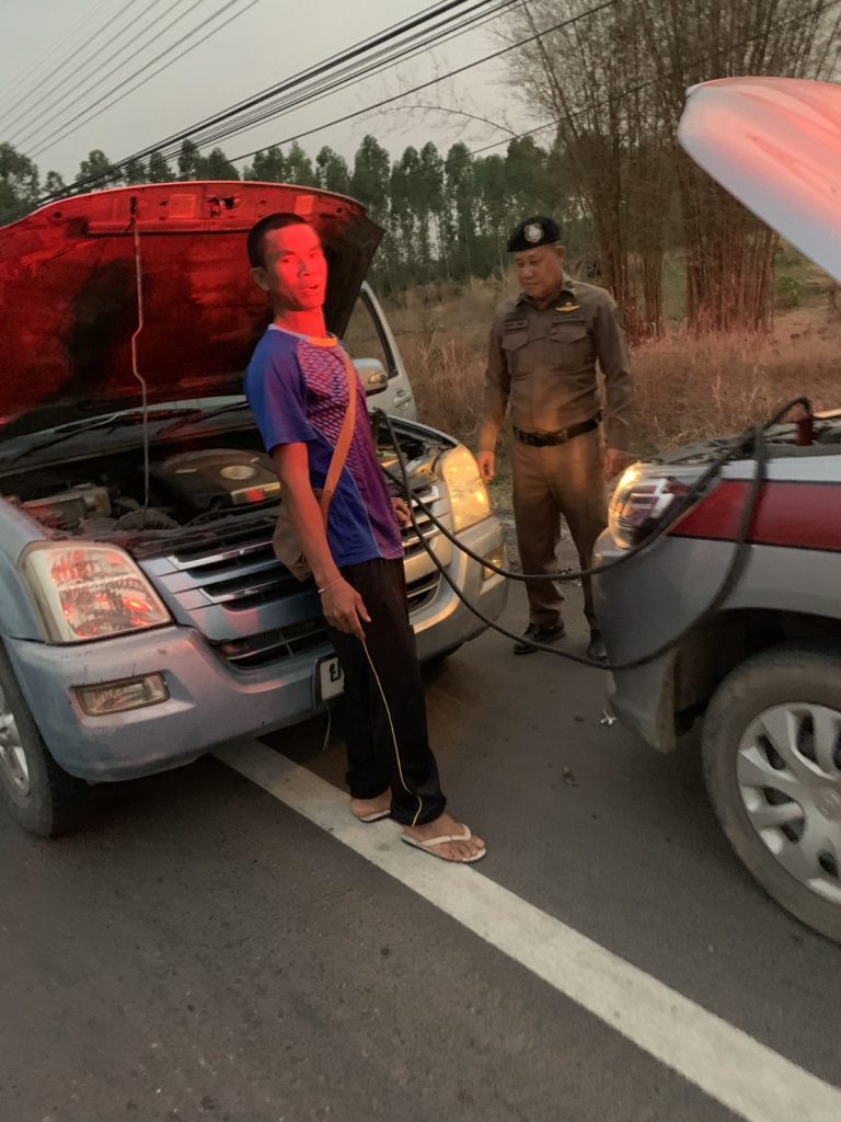 วันที่ 25 มี.ค. 68 เวลา 18.35 น. ร.ต.อ.ปฏิภาณ ปัตชิต รอง สว.สส.สภ.วังตะเคียน ปฏิบัติหน้าที่สายตรวจหนองสังข์ ช่วยเหลือ ประชาชนรถยนต์สตาร์ทไม่ติด จึงได้นำรถยนต์หลวงพ่วงแบตเตอรี่ให้ สามารถเดินทางต่อไปได้ปกติ