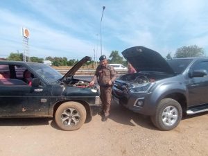 วันที่ 25 ม.ค. 68 เวลา17.10 น. ร.ต.ต.ชวะลิตร สุดไตร รอง สว.(ป.) สภ.วังตะเคียน สายตรวจปฏิบัติ หน้าที่ ประจำจุดสกัดสี่แยกวังดินสอ ตำบลวังท่าช้างฯ (ปฏิบัติงานจราจรอีกหน้าที่หนึ่ง)ริมถนน 359 กม.33 ได้นำสายพ่วง แบตเตอรี่พ่วงให้ เสสตาร์ทเครื่องยนต์ติดแล้ว สามารถเดินทางต่อไปได้