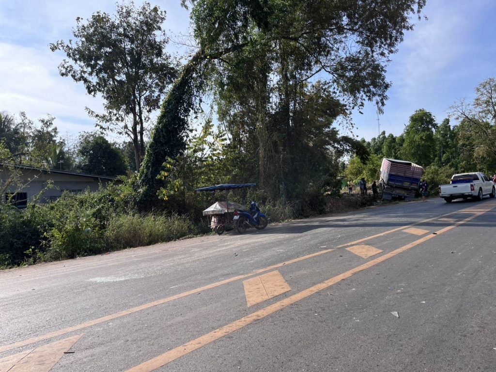 วันที่ 17 ม.ค.68 ร.ต.ท.วิโรจน์ เผือดจันทึก รอง สว.สอบสวน สภ.วังตะเคียน สายตรวจหนองสังข์ ตรวจสอบเหตุ ว.40 รถ 18 ล้อบรรทุก กับรถยนต์ปิกอัพ มีผู้ได้รับบาดเจ็บ เหตุเกิดถนน ปจ2006 ม.2 ต.บ่อทอง อ.กบินทร์บุรี จ.ปราจีนบุรี