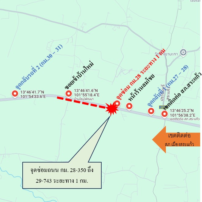 6 มี.ค.68 บริเวณ ถนน ทล.359 (ขาเข้า ต.เขาหินซ้อน) ตั้งแต่ช่วง กม.28-29 ระยะทาง 1 กม. มีการทำถนน ณ ขณะนี้กำลังทำช่องทางด้านขวาอยู่ รถยนต์รถจักรยานยนต์ สามารถใช้ช่องทางด้านซ้ายได้ 1 ช่องทาง