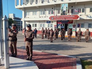 เคารพธงชาติ สวดมนต์ กล่าวคำปฏิญาณ อุดมคติตำรวจ อบรมชี้แจ้งข้อราชการในการปฏิบัติตัวเกี่ยวกับการเลือกตั้ง ปล่อยแถวสายตรวจออกปฏิบัติหน้าที่ในเขตพื้นที่รับผิดชอบ