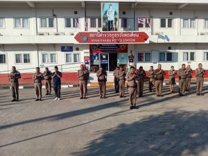 พ.ต.อ.พงศ์อนันต์ รักษาชาติ ผกก.สภ.วังตะเคียน ปล่อยแถวสายตรวจออกปฏิบัติหน้าที่ในเขตพื้นที่รับผิดชอบ