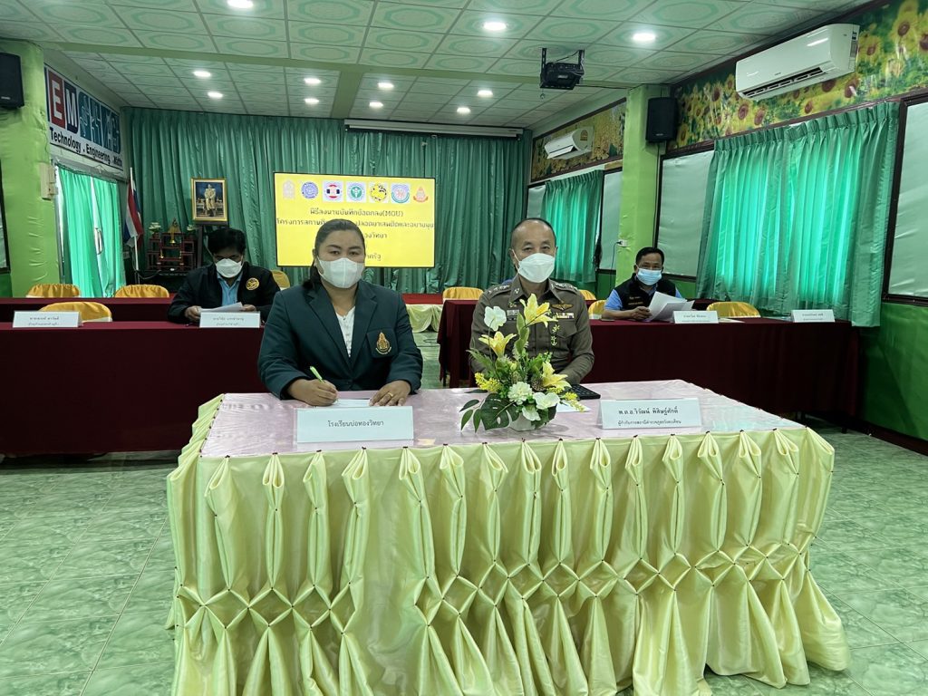10 ก.พ. 2566 เวลาประมาณ 09.00 น. พ.ต.อ.วิวัฒน์ พิสิษฐ์ศักดิ์ ผกก.สภ.วังตะเคียน ได้ร่วมกับคณะครู รร.บ้านบ่อทอง ผู้นำชุมชน จัดทำบันทึกข้อตกลง ตามโครงการสถานศึกษาสีขาว ปลอดยาเสพคิดและอบายมุข เป็นโครงการการป้องกันและแก้ไขปัญหายาเสพติดในสถานศึกษา รวมทั้งสร้างภูมิคุ้มกันในการเสริมสร้างทักษะชีวิตให้ห่างไกลจากยาเสพติด ณ. โรงเรียนบ้านบ่อทองวิทยา ต.บ่อทอง อ.กบินทร์บุรี จ.ปราจีนบุรี