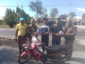 วันที่ 1 ม.ค. 67 เวลา 10.00 น.พ.ต.ท.สุบวร ยัติสาร สวป.สภ.วังตะเคียน พร้อมข้าราชการตำรวจจิตอาสา ประชาสัมพันธ์รณรงค์การขับขี่ปลอดภัยสวมหมวกนิรภัยเพื่อลดอุบัติเหตุจราจรทางบกในช่วงเทศกาลปีใหม่ 2568 ที่ ถนน ปจ.2006 ต.บ่อทอง อ.กบินทร์บุรี จ.ปราจีนบุรี