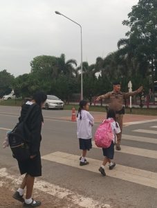 อำนวยความสะดวกการจรจร หน้าโรงเรียนบ้านวังดินสอ หมู่ที่ 1 ต.วังท่าช้างฯ