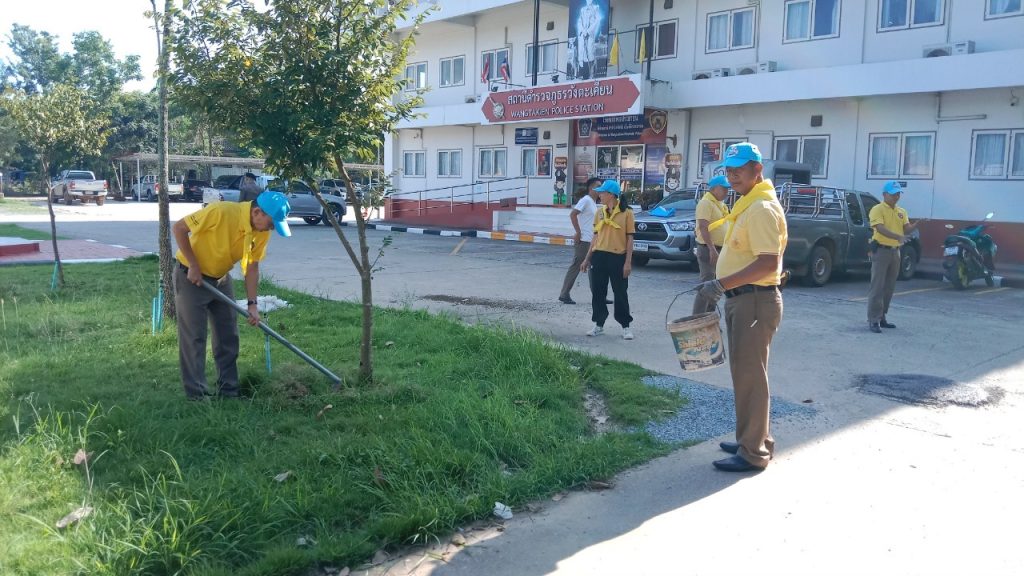 เมื่อวันที่ 24 ตุลาคม 2567 เวลา 15.00 น.พ.ต.อ.พงศ์อนันต์ รักษาชาติ ผกก.สภ.วังตะเคียน ได้พร้อมด้วยข้าราชการตำรวจในสังกัดจิตอาสา ร่วมกันปรับภูมิทัศน์บริเวณสถานีตำรวจ โดยการพรวนดิน ใส่ปุ๋ย รดน้ำต้นไม้ บริเวณโดยรอบสถานีตำรวจ เนื่องในวันรักต้นไม้