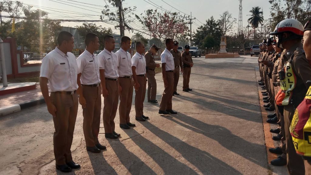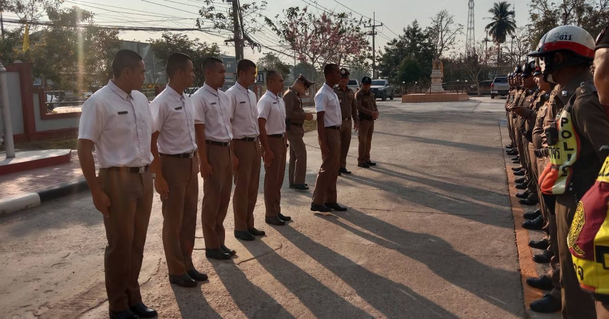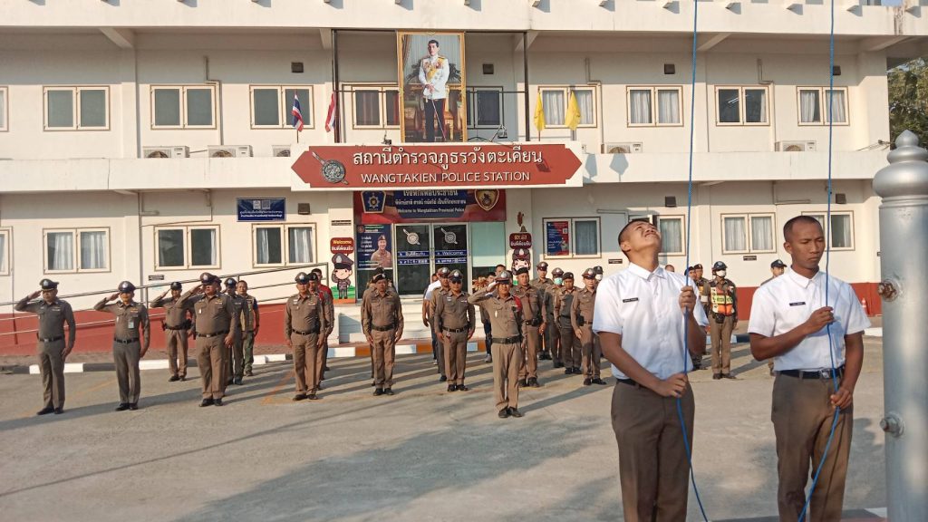 วันที่ 18 ก.พ.2568 เวลา 08.00 น. พ.ต.อ.พงศ์อนันต์ รักษาชาติ ผกก.สภ.วังตะเคียน ได้เรียกแถวข้าราชการตำรวจในปกครองเข้าแถวเคารพธงชาติ สวดมนต์ กล่าวคำปฏิภาณ อุดมคติตำรวจ แนะนำตัวนักเรียนนายสิบตำรวจ ตรวจทรงผม เครื่องแต่งกาย อบรมชี้แจงข้อราชการ ปล่อยแถวสายตรวจออกปฏิบัติหน้าที่ในเขตพื้นที่รับผิดชอบ