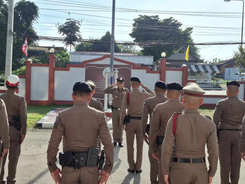 วันที่ 8 ส.ค.2568 เวลา 08.00 น. พ.ต.อ.พงศ์อนันต์ รักษาชาติ ผกก.สภ.วังตะเคียน ได้เรียกแถวข้าราชการตำรวจในปกครองเข้าแถวเคารพธงชาติ สวดมนต์ กล่าวคำปฏิญาณ อุดมคติตำรวจ อบรมชี้แจงข้อราชการ ปล่อยแถวข้าราชการตำรวจปฏิบัติหน้าที่ในเขตพื้นที่รับผิดชอบ และประชุมข้อราชการประจำเดือน