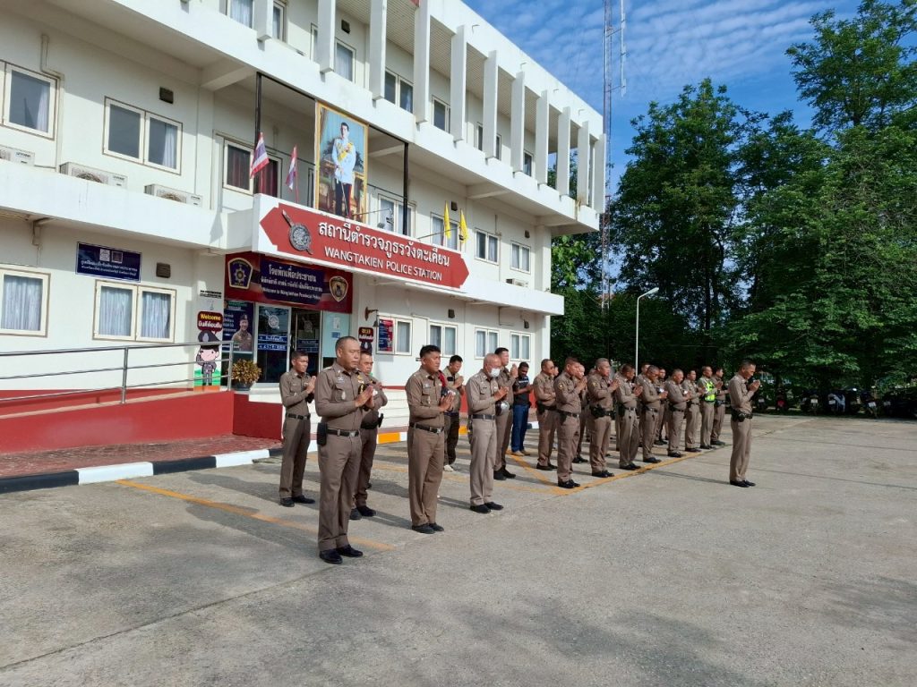 วันที่ 16 พ.ค.2568 เวลา 08.00 น. พ.ต.อ.พงศ์อนันต์ รักษาชาติ ผกก.สภ.วังตะเคียน ได้เรียกแถวข้าราชการตำรวจในปกครองเข้าแถวเคารพธงชาติ สวดมนต์ กล่าวคำปฏิญาณ อุดมคติตำรวจ อบรมชี้แจงข้อราชการ ปล่อยแถวข้าราชการตำรวจปฏิบัติหน้าที่ในเขตพื้นที่รับผิดชอบ และประชุมข้อราชการประจำเดือน