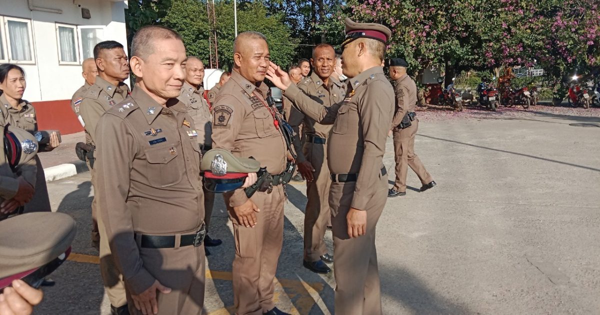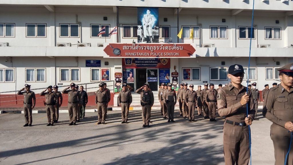 วันอังคารที่ 7 ม.ค.2568 พ.ต.อ.พงศ์อนันต์ รักษาชาติ ผกก.สภ.วังตะเคียน ได้เรียกแถวข้าราชการตำรวจในปกครองมาเข้าแถวเคารพธงชาติ สวดมนต์ กล่าวคำปฏิภาณ อุดมคติตำรวจ ตรวจเครื่องแต่งกาย ทรงผม ถูกต้องตามหลักเกณฑ์ ที่ตร.กำหนด ประชุมชี้แจงข้อราชการและขอขอบคุณข้าราชการตำรวจทุกนายที่ได้ร่วมกันดูแลความปลอดภัยให้กับประชาชนในช่วงเทศกาลปีใหม่ ปล่อยแถวสายตรวจออกปฏิบัติหน้าที่ในเขตพื้นที่รับผิดชอบ