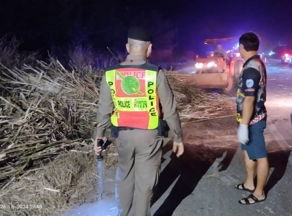 วันที่ 26 ธ.ค.67 เวลาประมาณ 19.20 น. ร.ต.ต. ชวะลิตร สุดไตร รอง สว. (ป.) สภ.วังตะเคียน สายตรววจประจำจุดสกัดวังดินสอ – ตำบลวังท่าช้างฯ ว.4 เหตุ 191 เหตุ คนขับรถยนต์ชนกองอ้อยที่ร่วงหล่นบนถนน เนื่องจากรถบรรทุกอ้อยกระโดดคอสะพาน ทำให้อ้อยร่วงหล่น คนขับรถยนต์ ได้รับบาดเจ็บเล็กน้อย สามารถเปิดช่องทางการจราจรตามปกติ สถานที่เกิดเหตุ ถนน 359 ช่วง กม. 35 ถึง 36 มุ่งหน้าไปทาง จังหวัดสระแก้ว ร.ต.ต.ปราโมทย์ เสสสี รอง สว.สอบสวน สภ.วังตะเคียน ตรวจสอบที่เกิดเหตุ