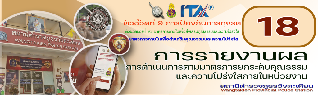 - การรายงานผลการดำเนินการมาตรการยกระดับคุณธรรมและความโปร่งใสภายในหน่วยงาน ของสถานีตำรวจภูธรวังตะเคียน